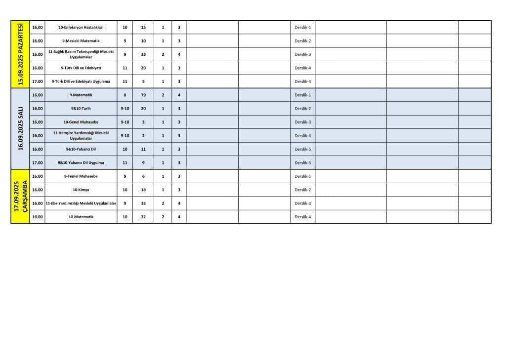 Tüm öğrenci ve veliLerimizin dikkatine!! Ders başlangıç ve bitiş...